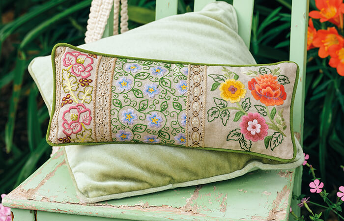 Stitching Floral Symphony will be a pleasure, and the pre-printed design is just the start. You’ll get to enjoy working with buttery-soft silk and cotton threads in a rainbow of colours. You’ll get to experiment with a delightful array of different stitches. You’ll get the joy of constructing a gorgeous cushion following the easy-to-work instructions. And then you’ll get the endless pleasure of seeing your finished project each time you enter the bedroom or living room.
