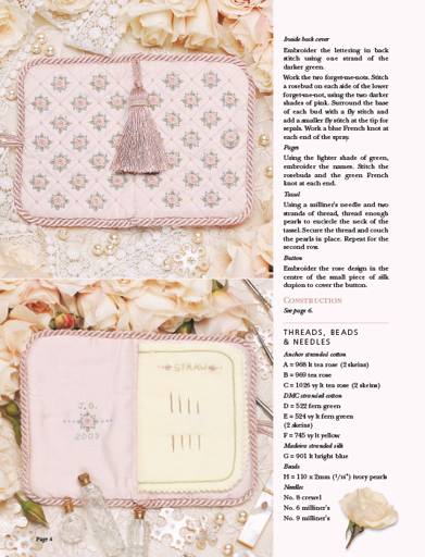A sublime blush pink needlecase, decorated with a lattice of delicate pintucks is embroidered with plump pink roses and tiny blue forget-me-nots.